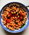 Cavatappi with tomato sauce and basil